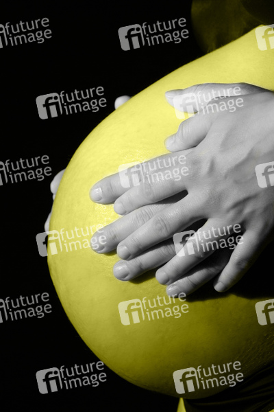 Bauch, Schwangerschaft, Baby, fast nackt, Hände, Zitrone, Unterwäsche, nude, pregnant, stomach, hands, lemon