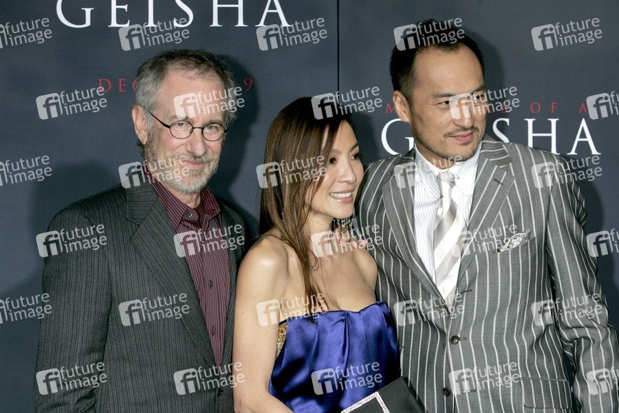 Steven Spielberg, Michelle Yeoh und Ken Watanabe bei der Premiere des Kinofilms 'Memoirs of a Geisha / Die Geisha' im Kodak Theater. Los Angeles, 04.12.2005