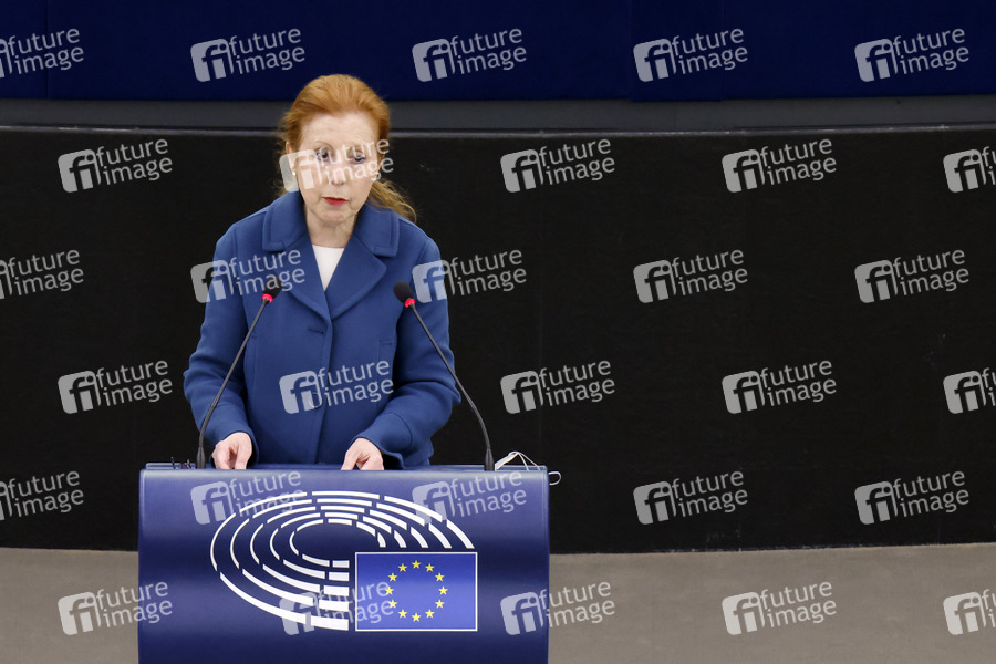 Maria da Graca Carvalho im Plenarsaal des Europäischen Parlaments. Straßburg, 10.03.2022
