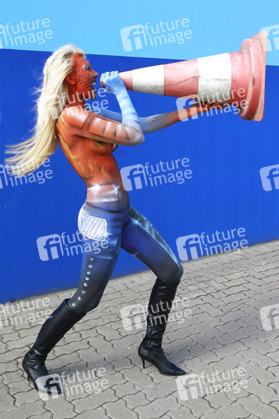 Bodypainting und Photoshooting mit Model Anastasia in einer Auto- und LKW-Waschanlage in Lauenau. Bodypaint Künstler: Jörg Düsterwald