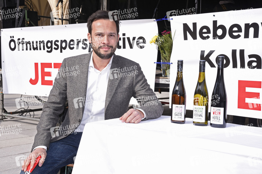 Martin Hagen bei der Protestaktion 'GemeinsamZukunft! Es reicht!' für Öffnungen und Lockdownende auf dem Marienplatz. München, 07.03.2021