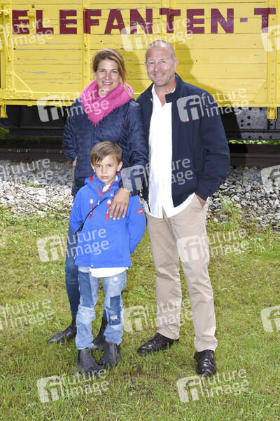 Heino Ferch mit Ehefrau Marie-Jeanette und Sohn Gustav Theo Cian beim Presserundgang auf der Circus Krone-Farm. Weßling, 29.06.2020