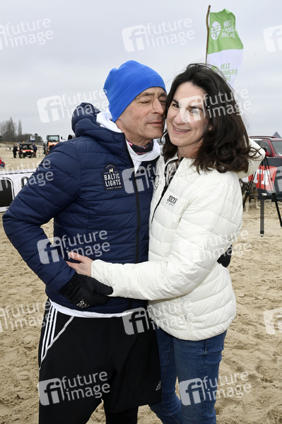 Jan Sosniok mit Ehefrau Nadine Sosniok beim 9. Baltic Lights 2025 Charity-Schlittenhunderennen zu Gunsten der Welthungerhilfe zwischen der Seebrücke Ahlbeck und der Seebrücke Heringsdorf. Heringsdorf, 01.03.2025