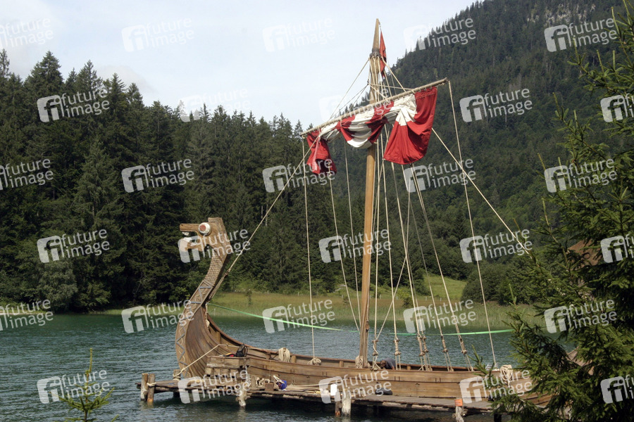 Am Filmset vom Michael 'Bully' Herbig Film 'Wickie und die starken Männer' am Walchensee in Oberbayern zwischen Garmisch und Bad Tölz. Das Wikingerdorf befindet sich in der Sachenbacher Bucht. Das Dorf bleibt nach den Dreharbeiten als Touristenattraktion stehen.