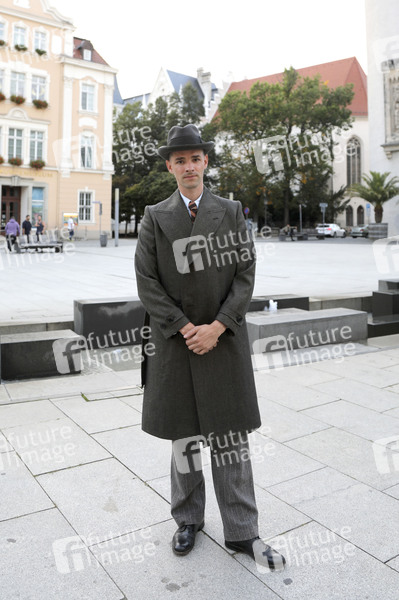 Maximilian Pekrul bei Dreharbeiten am Set für das TVNOW Serien-Drama 'Torstraße 1' auf dem Marienplatz vor dem Kaufhaus. Görlitz, 06.09.2021