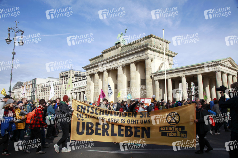 Aktivisten der Klimabewegung 'Extinction Rebellion' bei einer Demonstration vom Tiergarten zum Brandenburger Tor. Berlin, 11.10.2019