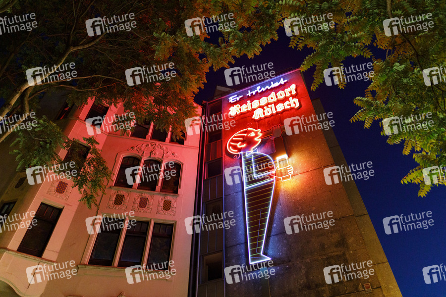 Reissdorf, Reissdorf-Figur, Reissdorf-Figuren, Reissdorf-Neonfiguren, Neonfigur, Kölsch, Bier, Bier trinken, Privat-Brauerei Heinrich Reissdorf, Leuchtreklame, Werbung, Reklame, Außenwerbung, Kultwerbung, Kultreklame, Neon-Reklame, Reissdorf Kölsch, er trinkt Reissdorf Kölsch, sie trinkt Reissdorf Kölsch, Kölsch-Marke, Brauerei, Denkmalschutz, Reissdorf-Werbung, obergärig, Obergäriges, Kölner Ringe, Reissdorf-Pärchen, Leuchtstoff, Elektroden, Amüsiermeile, Kölner Stadtbild, Sichtwerbung, Leuchtröhren, Leuchtdioden, Werbebranche, Tradition, Leuchtstoffröhren, denkmalgeschützte Leuchtreklame, Alkoholwerbung, Bierwerbung, Kölner Bier, LED, Reissdorf-Männchen, Kultstatus, Reklamefigur, Reklamefiguren, Reissdorf-Reklame, Maskottchen, Bier-Werbung, Bier-Reklame, Kölsch-Reklame, Symbolbild, Symbolfoto