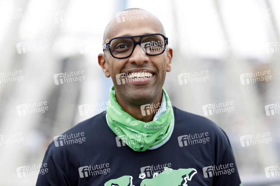 Amiaz Habtu beim Fototermin zur sportichen '#WocheChallenge' im Deutschen Sport & Olympia Museum. Unter dem Motto 'Wir können was bewegen!' ruft die Welthungerhilfe zu dieser Challenge auf und bittet um Spenden für eine Welt ohne Hunger. Köln, 07.10.2020