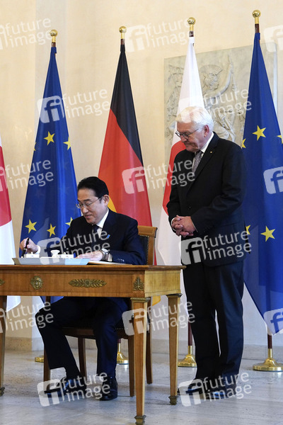 Fumio Kishida und Frank-Walter Steinmeier beim Empfang des Premierministers von Japan zu einem gemeinsamen Gespräch im Schloss Bellevue. Berlin, 12.07.2024
