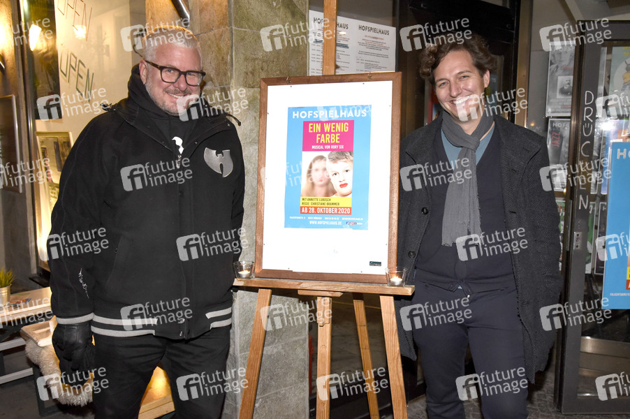 Moses Wolff und Sascha Fersch bei der Premiere des Transgender-Musicals 'Ein wenig Farbe' von Rory Six im Hofspielhaus. München, 28.10.2020