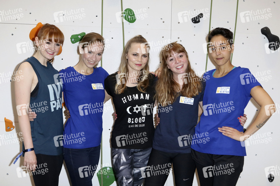 Sabrina Ziegler, Ilka Groenewold, Regina Halmich, Joanna Semmelrogge und Alexa Benkert beim 'Promi-Klettern im Atrium in der Europa Passage. Hamburg, 13.06.2019