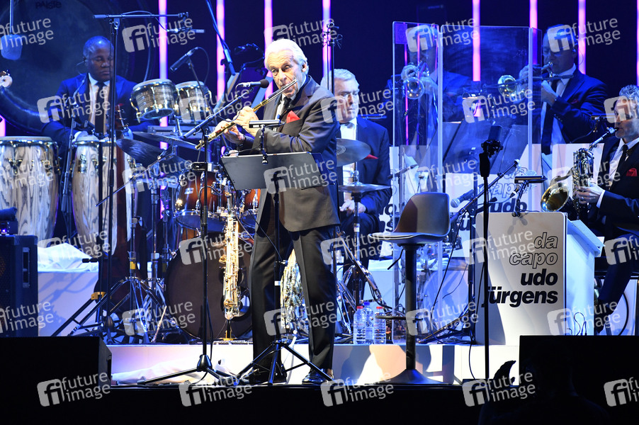 Das Orchester Pepe Lienhard bei der Premiere der Show 'Da Capo Udo Jürgens' in der Uber Arena. Berlin, 02.11.2024