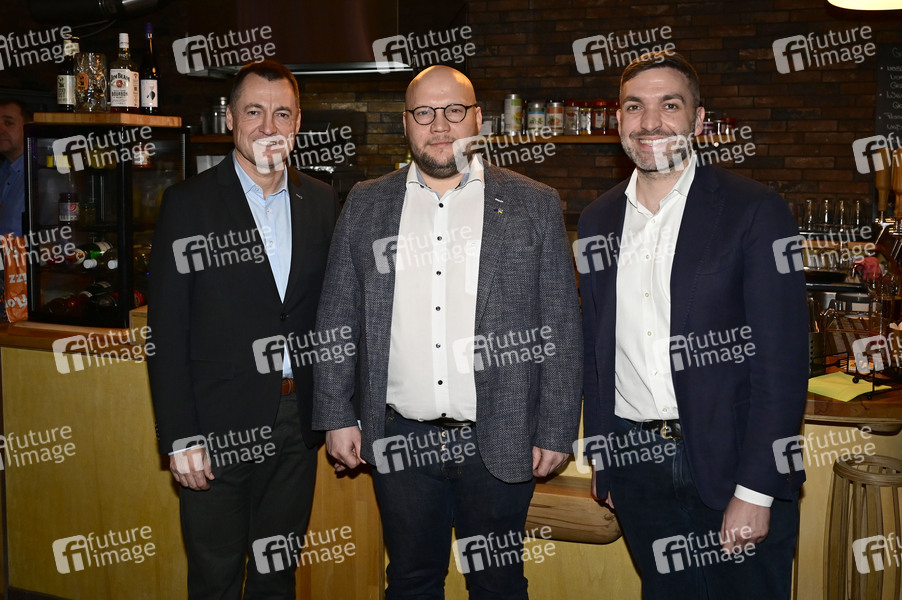 Torsten Herbst, Toralf Einsle und Konstantin Kuhle beim Neujahrsempfang 2025 vom FDP-Kreisverbandes Görlitz im Sudost. Görlitz, 15.01.2025