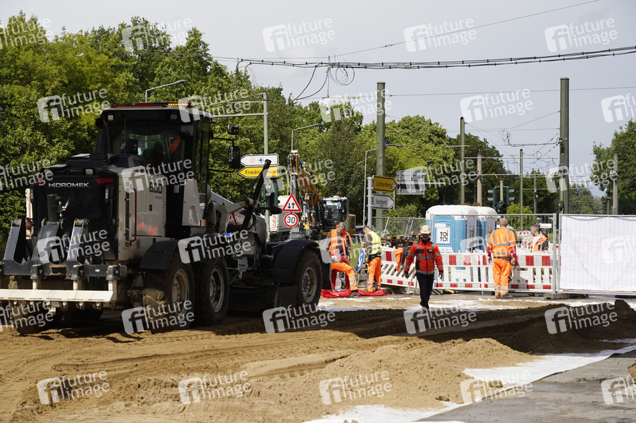 Beginn vom Abriss der maroden Brücke an der Wuhlheide (Oberschöneweide). Die kaputte Brücke soll schnellstmöglich entfernt werden mit dem Ziel, die Freigabe der blockieren Straßenbahntrasse und Wiederherstellung des Fuß- und Radverkehrs zwischen Treskowallee und Edisonstraße möglichst bis zum 30. Mai. Berlin, 23.05.2025