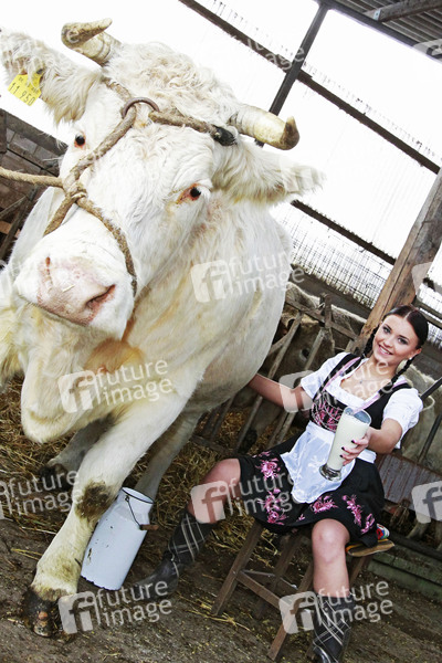 SOLsnap Cover-Model Januar 2013, Tier, Kuh, Milch, melken, Dirndl
