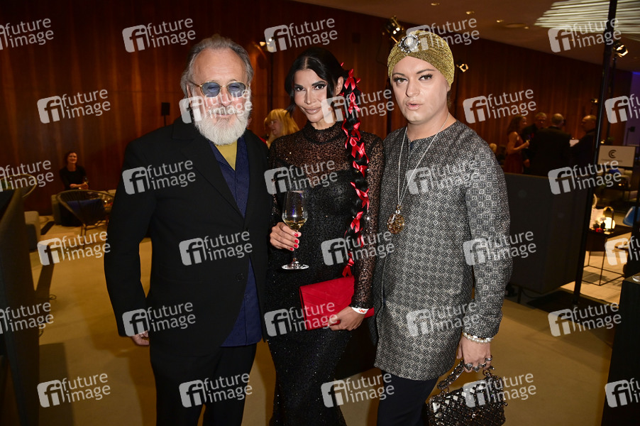 Friedrich Liechtenstein, Micaela Schäfer und Julian F.M. Stoeckel bei der Festlichen Opernnacht 2024 für die Deutsche AIDS-Stiftung in der Deutschen Oper. Berlin, 02.11.2024