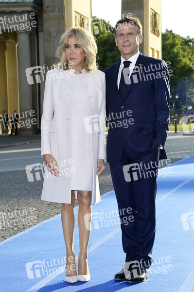 Emmanuel Macron mit Ehefrau Brigitte Macron beim Gang durchs Brandenburger Tor. Berlin, 26.05.2024