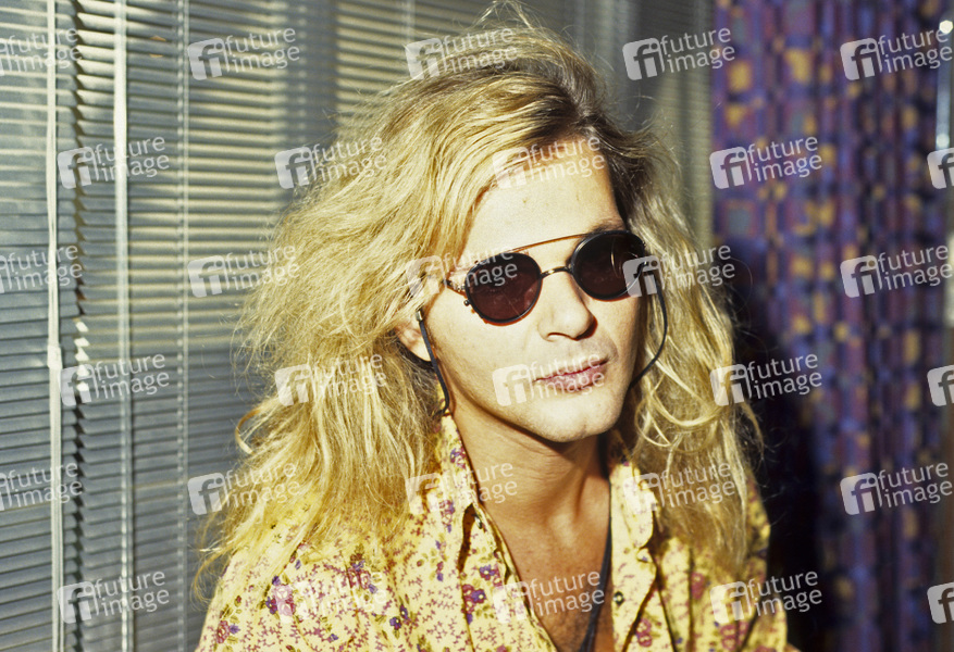 Rikki Rockett von Poison bei einem Photoshooting in einem Hotel. London, 18.05.1991
