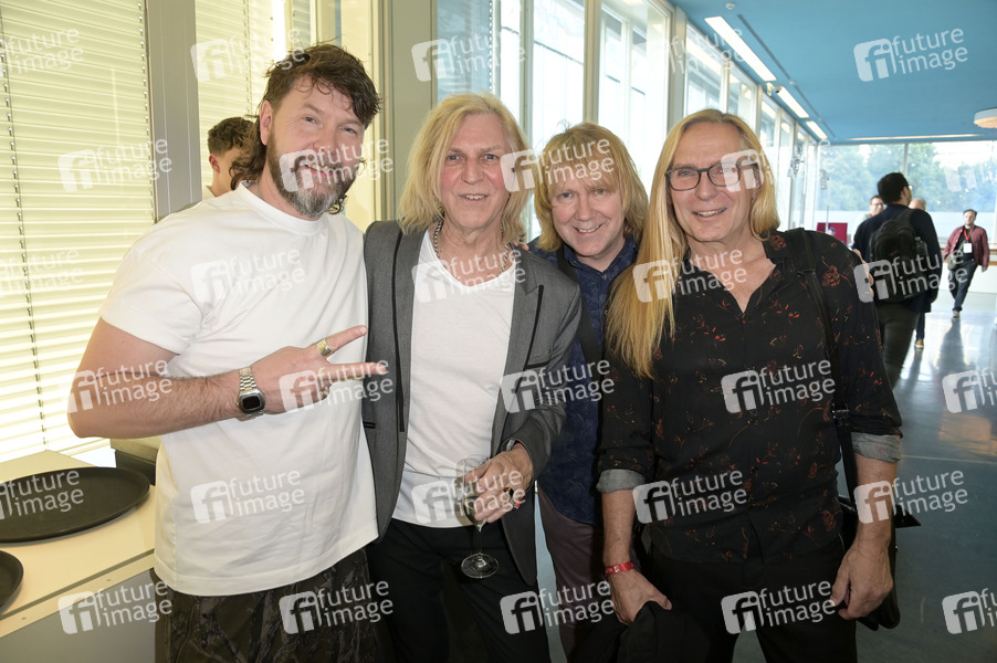 Rea Garvey, Rüdiger Ritchie Barton, Tobias Künzel und Uwe Hassbecker bei der Verleihung des Fred Jay Preises 2024 im bcc Berlin Congress Center. Berlin, 14.05.2024