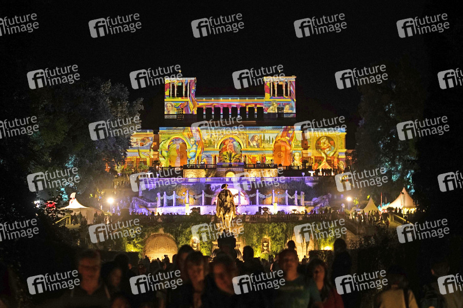 Lasershow bei der XXI. Potsdamer Schlössernacht 2019 im Schlosspark Sanssouci. Potsdam, 17.08.2019