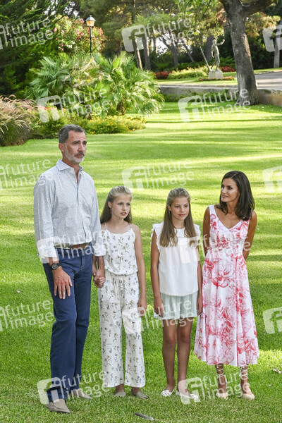 König Felipe VI. von Spanien, Prinzessin Leonor, Prinzessin Sofia und Königin Letizia von Spanien beim Sommer Photocall im Marivent Palace. Palma de Mallorca, 04.08.2019