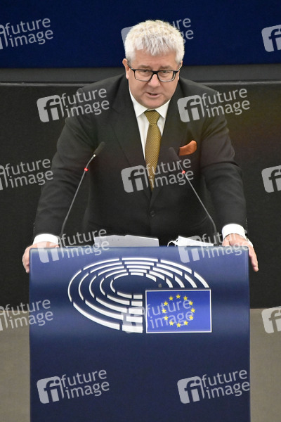 Ryszard Czarnecki bei einer Plenartagung zur Zusammenarbeit und Gemeinsamkeiten des Putin-Regimes und rechtsextremer sowie separatistischer Bewegungen in Europa im Plenarsaal des Europäischen Parlaments. Straßburg, 06.04.2022