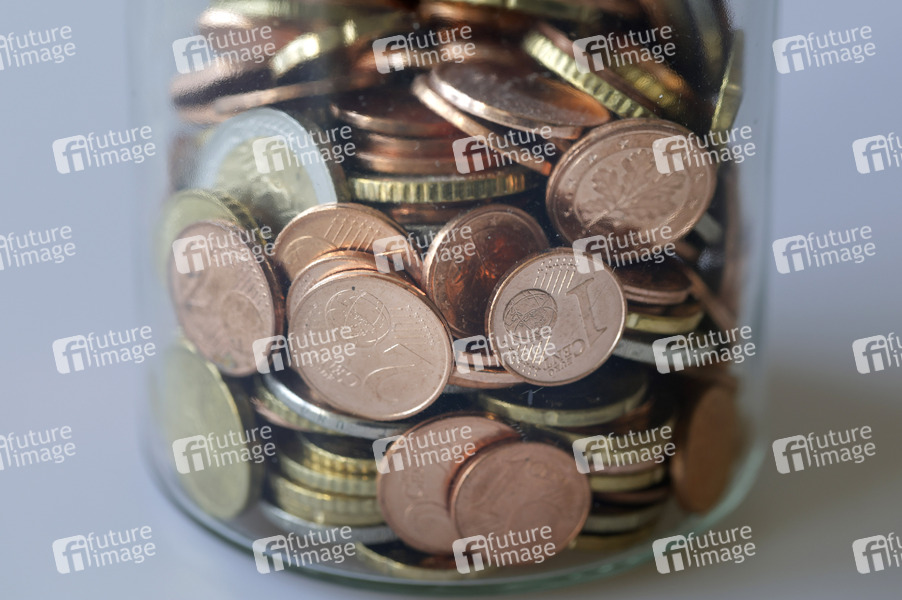 Ein Glas voller Euro Münzen