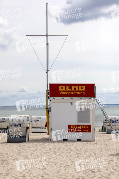 Strandüberwachung und Wasserrettungsdienst des DLRG am Ostseestrand. (Symbolfoto, Symbolbild) Dahme, 05.06.2024