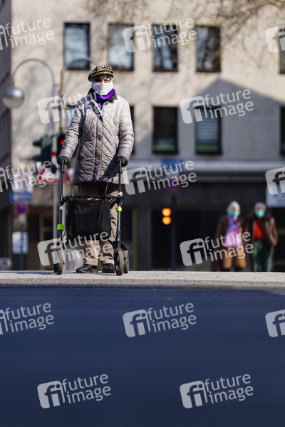 Rentner, Rentnerin, Lebensgefahr, Alte, Senioren, Seniorin, Senior, Rollator, selbstgemachte Maske, Isolation, Einkaufen, Besorgungen, besonders gefährdete Gruppen, Atemschutz, Atemschutzmaske, Virenschutz, Schutzmaske, Schutzmasken, Atemschutzmasken, Maske, Masken, FFP1, FFP2, FFP3, FFP-Schutzklassen, Schutzklasse, Mundschutz, Mund-Schutz, Mundschutzpflicht, Mundschutz-Pflicht, Mund-Nase-Schutz, Mund-Nasen-Schutz, MNS, Ausbreitung, Maskenzwang, Maskenpflicht, Infektionsgefahr der Öffentlichkeit, Lock Down, Lockdown, Öffentlichkeit, Eindämmung, Seucheneindämmung, anstecken, infizieren, Vorbeugung, Prävention, schützen, Schutz, Ausgangssperre, Ausgangssperren, Ausgangsverbot, Ausgangsverbote, Kontaktverbot, Kontaktverbote, Versammlungsfreiheit, Versammlungsverbot, Abriegelungen, Ansammlungsverbote, Ansammlungsverbot, Ausgangseinschränkung, Ausgangsbeschränkung, Ausgangsbeschränkungen, Kontaktsperre, Bewegungsfreiheit, Grundrechte, Einschränkung, Verzicht, Seuchenschutz, Corona-Schutz, Virus, Viren, Corona, Sars-CoV-2, Covid-19, Coronavirus, Coronaviren, Corona-Virus, Corona-Viren, Ansteckung, Ansteckungsgefahr, Epidemie, Pandemie, Infektion, Infektionen, Ansteckungsangst, Seuche, anstecken, Corona-Symptome, CoronaApp, Corona App, Symptom, Symptome, Krankheit, infiziert, infizieren, Vorbeugung, Prävention, schützen, Schutz, Notstand, Notstandsgesetze, Social Distancing, zu Hause bleiben, Selbstisolation, soziale Kontakte, Risiko, Risikobewertung, Maßnahmen, Neuansteckungen, Ansteckung, Coronakrise, Corona-Krise, Coronamaßnahmen, Corona-Infektion, Corona-Infektionen, Corona-Schutz, menschenleer, ausgestorben, Endzeitstimmung, flatten the curve, Notstand, Notstandsgesetze, Marial Law, Notfall, Ausnahmesituation, Ausnahmezustand, Zeitgeschichte, Übertragung, Erreger, Prävention, #stay home, #stayhome, Corona-Regeln, Corona-Maßnahmen, Schutzmaske tragen, Schutzmasken tragen, Selbstschutz, Tröpfchen-Infektion, Symbolfoto, Symbolbild