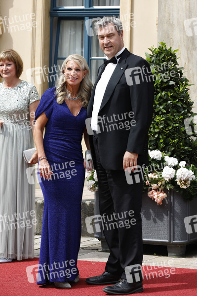 Markus Söder mit Ehefrau Karin Baumüller-Söder bei der Eröffnung der 112. Richard-Wagner-Festspiele 2024 mit der Neuinszenierung von 'Tristan und Isolde' im Bayreuther Festspielhaus. Bayreuth, 25.07.2024