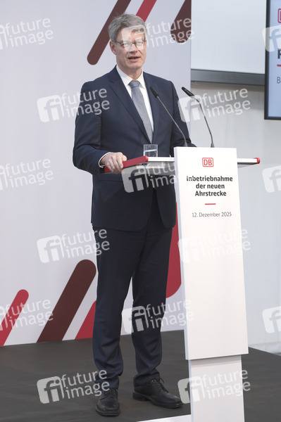 Patrick Schnieder bei der Inbetriebnahme der neuen Ahrtalbahn mit Sonderfahrt von Dernau nach Altenahr. Altenahr, 12.12.2025