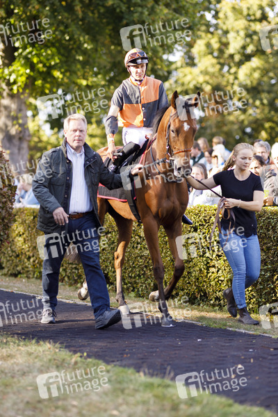 Bauyrzhan Murzabayev auf Surani beim Tipico Renntag auf der Galopprennbahn in Weidenpesch. Köln, 06.09.2019