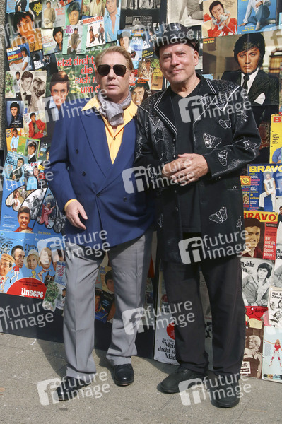 Ben Becker und Rosa von Praunheim beim Fototermin am Set des ARD Dokudramas 'Der letzte Tanz - Die Rex-Gildo-Story' auf dem rbb-Gelände. Berlin, 16.08.2021