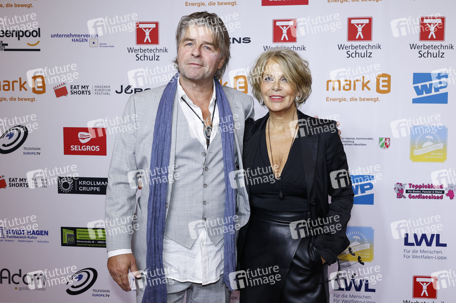 Uwe Fellensiek mit Begleitung bei der Eröffnung vom 11. Eat My Shorts - Hagener Kurzfilmfestival 2024 in der Stadthalle. Hagen, 16.11.2024