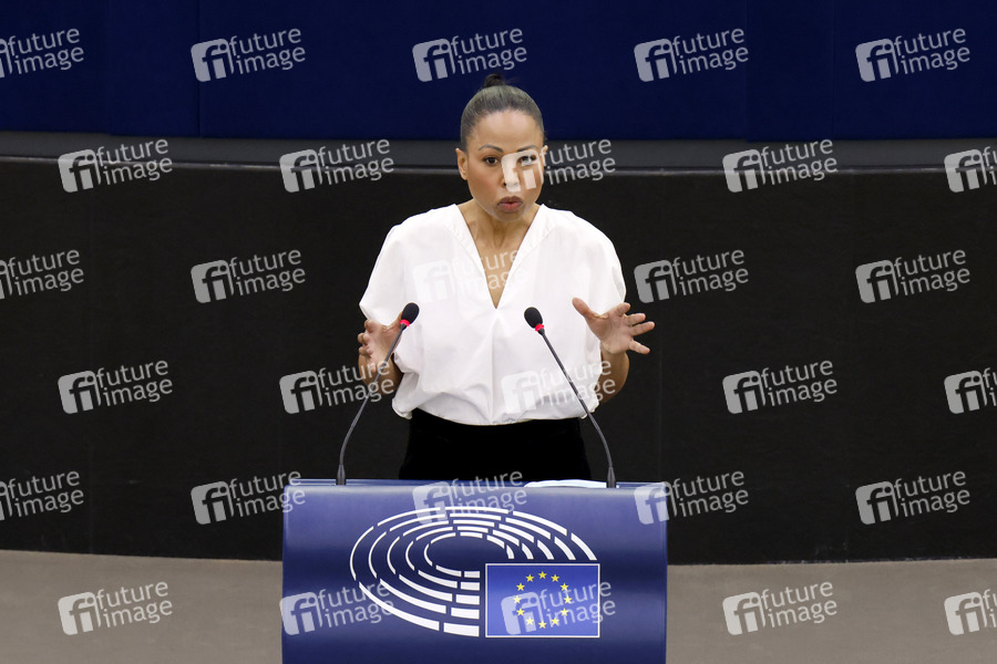 Alice Kuhnke im Plenarsaal des Europäischen Parlaments. Straßburg, 10.03.2022