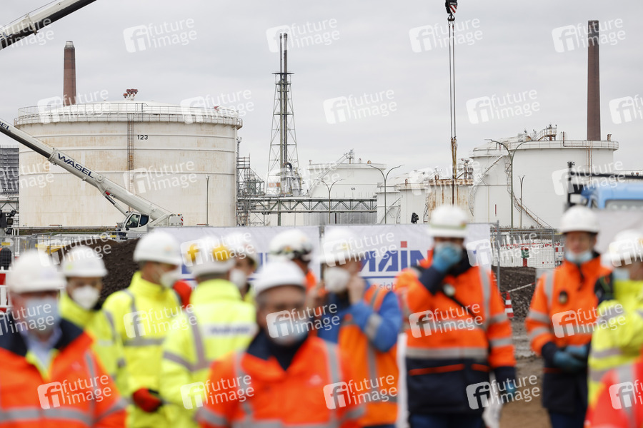Impression des Baustellenbereichs bei der Eröffnung der Baustelle für Deutschlands größte Anlage zur Herstellung von Bio-Flüssiggas auf dem Gelände des 'Shell Energy an Chemicals Park Rheinland'. Köln, 09.02.2022