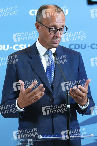 Friedrich Merz beim Pressestatement zur Fraktionssitzung der CDU/CSU-Bundestagsfraktion im Reichstagsgebäude. Berlin, 09.09.2024