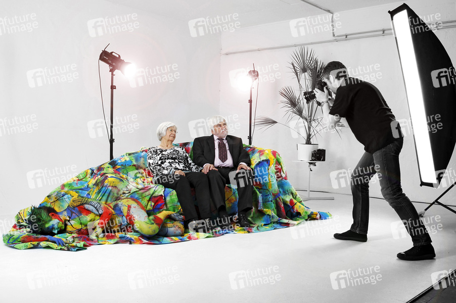 WORKING ART ist eine Bilderserie des Künstlers Jörg Düsterwald und des Fotografen Tschiponnique Skupin. Dabei werden Berufe mit der künstlerischen Bildsprache der Körpermalerei neu dargestellt. In den Schaffensprozess werden reale Unternehmen und authentische Locations eingebunden, um eine Symbiose zwischen Arbeitswelt und Kunst zu schaffen. Hier ein Shooting mit Model Mandy, den Rentnern Irma und Klaus und Fotograf Tschipo im SOL-Fotostudio. Hameln, 10.07.2015