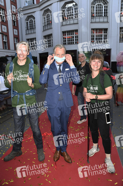 Meik Gudermann, Max Raabe und Laura Kuhlen beim Fototermin zur Aktion '750 Kulturkilometer' von Köln nach Berlin, um die Menschen während der Corona-Krise für die aktuelle Problemlage der Kulturlandschaft zu sensibilisieren, im Admiralspalast. Berlin, 23.06.2020