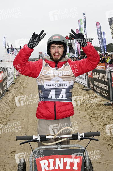Mario Novembre beim 9. Baltic Lights 2025 Charity-Schlittenhunderennen zu Gunsten der Welthungerhilfe zwischen der Seebrücke Ahlbeck und der Seebrücke Heringsdorf. Heringsdorf, 01.03.2025
