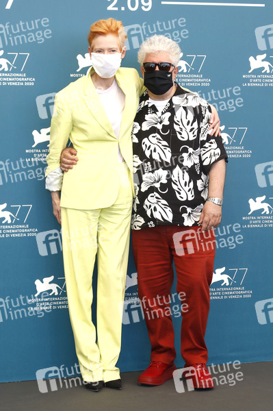Tilda Swinton und Pedro Almodovar beim Photocall zum Kurzfilm 'The Human Voice' auf der Biennale di Venezia 2020 / 77. Internationale Filmfestspiele von Venedig im Palazzo del Casino. Venedig, 03.09.2020
