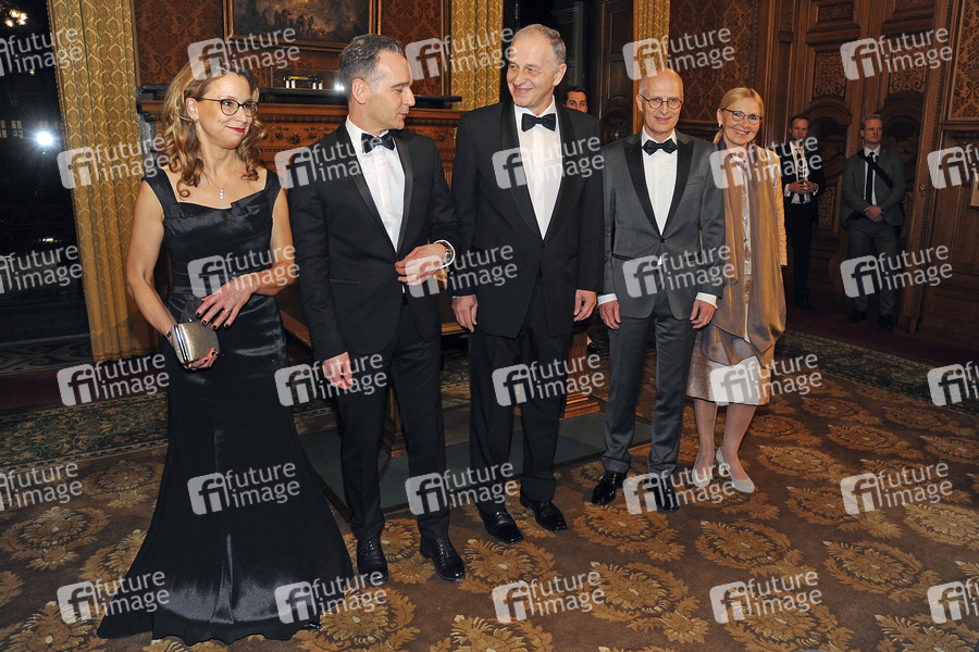 Carola Veit, Heiko Maas, Mircea Geoana, Peter Tschentscher und Eva Maria Tschentscher beim Eintrag ins Goldene Buch beim Matthiae Mahl im Rathaus Hamburg. Hamburg, 28.02.2020