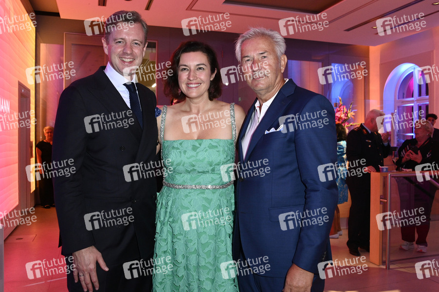 Oliver Bär, Dorothee Bär und Klaus Wowereit bei der Bertelsmann Party 2025 in der Bertelsmann Repräsentanz Unter den Linden. Berlin, 11.09.2025