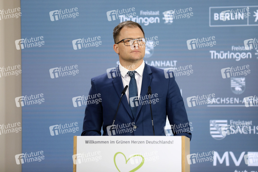 Carsten Schneider bei der 53. Regionalkonferenz der Regierungschefin und der Regierungschefs der ostdeutschen Länder, der MPK-Ost, in der Vertretung des Freistaates Thüringen beim Bund. Berlin, 03.04.2025