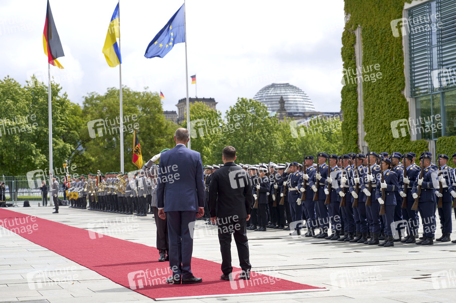 Friedrich Merz und Wolodymyr Selenskyj beim Empfang des Präsidenten der Ukraine mit militärischen Ehren und zu einem gemeinsamen Gespräch mit anschließendem Pressestatement im Bundeskanzleramt. Berlin, 28.05.2025
