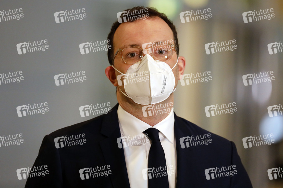 Jens Spahn bei einem Pressestatement im Rahmen der 204. Sitzung des Deutschen Bundestages im Reichstagsgebäude. Berlin, 14.01.2021