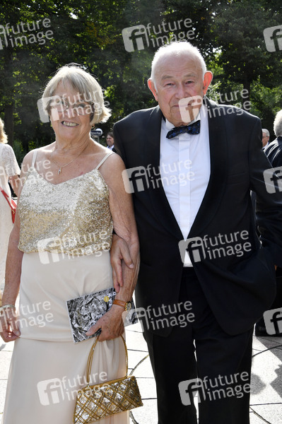 Günther Beckstein mit Ehefrau Marga Beckstein bei der Eröffnung der 112. Richard-Wagner-Festspiele 2024 mit der Neuinszenierung von 'Tristan und Isolde' im Bayreuther Festspielhaus. Bayreuth, 25.07.2024