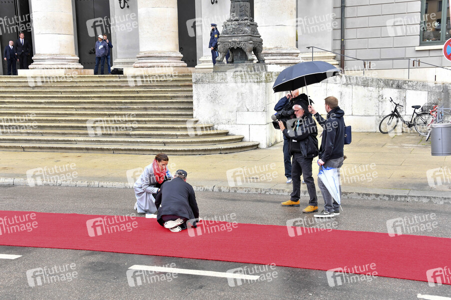 Vorberteitungen zur Begrüßung der britischen Royals auf dem Max-Joseph-Platz vor der Residenz München. München, 09.05.2019