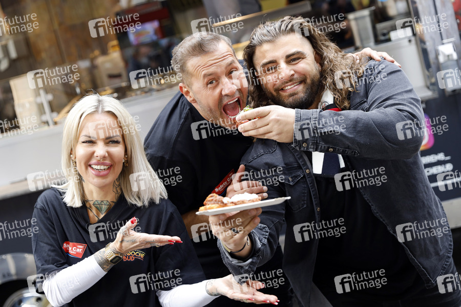 Prominenz, Celebrity, Celebrities, Fotocall, Photocall, Präsentation, Unterhaltung, Entertainment, Food Truck, Truck, Reibekuchen Truck, Willi Herrens Rievkooche Bud, Influencerin, Schauspieler, Entertainer, Sänger