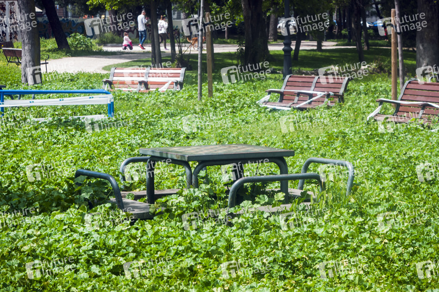 Verwilderte Parkanlage im Zentrum Madrids am 47. Tag seit Verhängung des Ausnahmezustands durch die spanische Regierung wegen der Coronakrise. Madrid, 30.04.2020